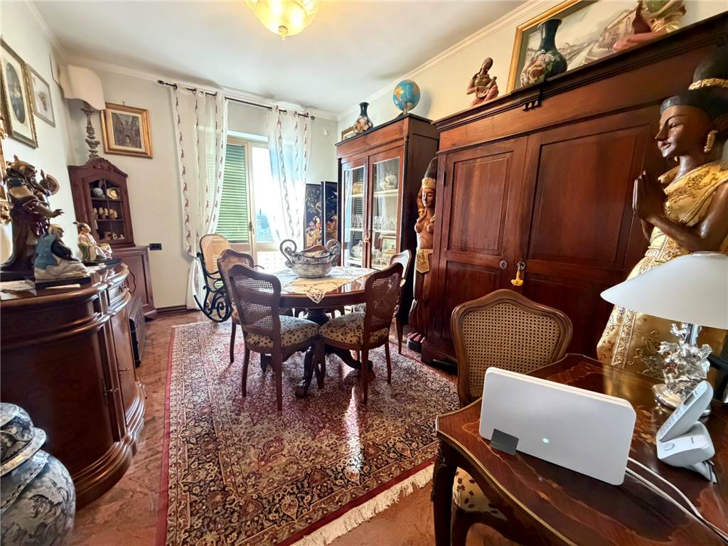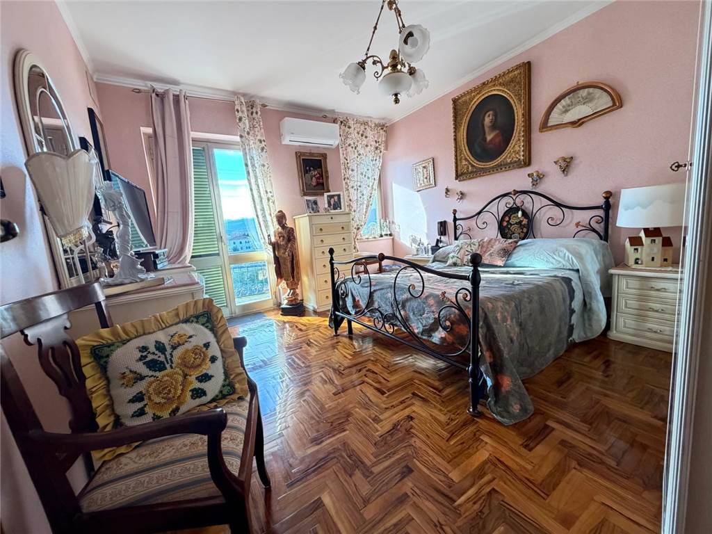ALBENGA: In posizione centrale comoda a negozi, servizi e scuole e a due passi dal centro storico, plurilocale posto al 3° piano con ascensore, composto da ampio ingresso-corridoio, grande cucina abitabile, doppia sala, quattro camere doppie, camera adibita a lavanderia, primo bagno finestrato con box doccia, sala da bagno finestrata con vasca, terzo bagno adibito a ripostiglio e 4 terrazzi. L'immobile è libero su tre lati, con esposizione est-sud-ovest, si presenta in ottimo stato di manutenzione, riscaldamento autonomo, impianto di condizionamento caldo/freddo, pavimentazione nella zona giorno in marmo, nella zona notte in parquet d'ulivo, infissi in alluminio con doppio vetro. Ideale prima casa per famiglia numerosa o eventuale attività di Bed and Breakfast. Completano la proprietà una cantina, un comodo box auto di 21 mq posto al piano semi-interrato dello stabile e due posti auto scoperti. Ampio parcheggio condominiale sottostante.
