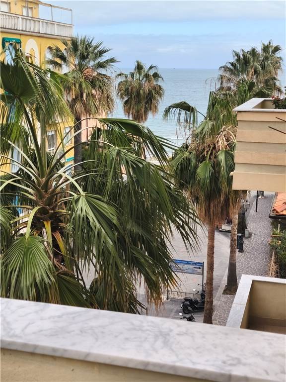 L’alloggio ci accoglie con un ingresso su disimpegno, una cucina abitabile, un bel soggiorno angolare con doppio balcone e vista mare, due camere, un bagno finestrato e al piano superiore una soffitta.