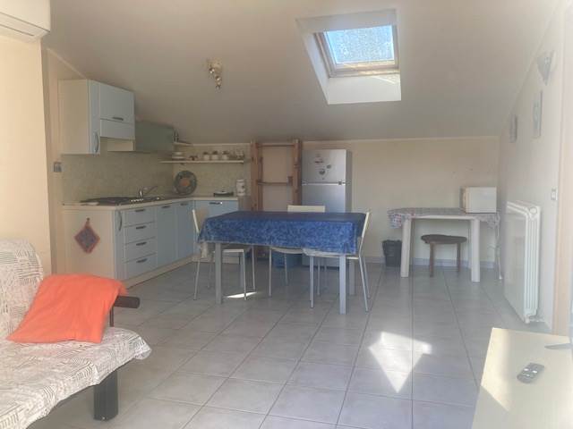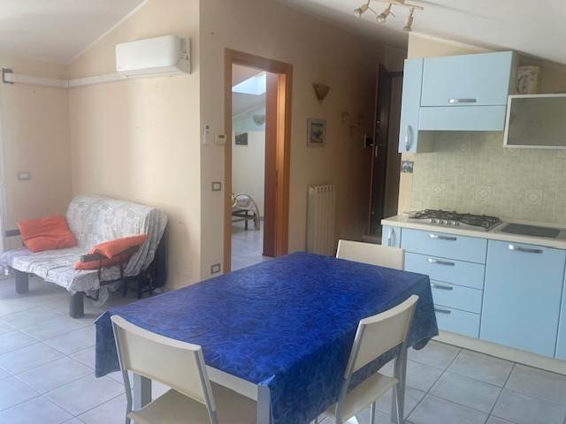 ALBENGA: A 3 km dal mare, valido trilocale mansardato in buone condizioni, libero su 2 lati, posto al terzo ed ultimo piano senza ascensore di un caseggiato edificato nel 2005 con facciata e tetto in ordine. L'appartamento è composto da ingresso nel soggiorno con cucina a vista, due camere matrimoniali, bagno finestrato con box doccia, terrazzino vivibile, esposizione al sole ottimale, riscaldamento termoautonomo tramite nuova caldaia a gas esterna, pompa di calore inverter per aria condizionata caldo/freddo con nuovo unico split nel soggiorno, basse spese di gestione condominiale
