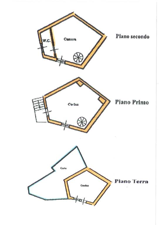 L'immobile si sviluppa su 3 livelli. Al piano terra una caratteristica cantina di circa 20 mq con roccia viva a vista, al piano primo un ampio locale con adiacente corte da utilizzare come zona relax, al terzo e ultimo piano un locale da adibire a zona notte.